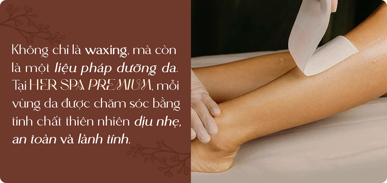 “Waxing tại Her Spa Premium là phương pháp loại bỏ lông hiệu quả, an toàn và thân thiện với làn da nhạy cảm. Chúng tôi sử dụng sáp thiên nhiên nhập khẩu, giàu tinh chất dưỡng ẩm, giúp lấy sạch tận gốc mà vẫn bảo vệ lớp màng ẩm tự nhiên, cho làn da mềm mượt, đều màu và sáng hơn sau mỗi buổi thực hiện.”